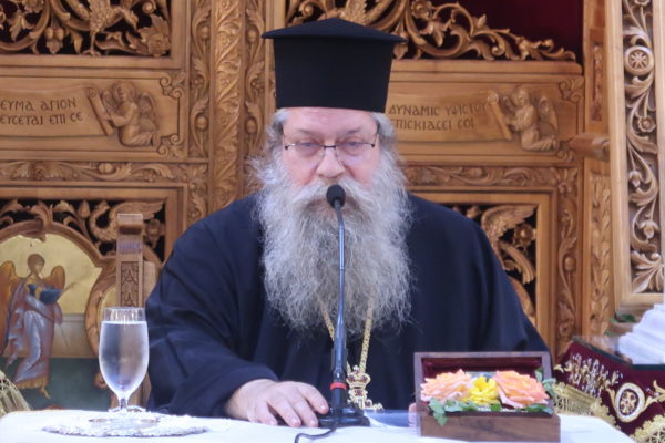Μετά την ομιλία ο Γέροντας Γαβριήλ, έθεσε προς ασπασμό για τους πιστούς τμήμα της χειρός του Οσίου Δαυΐδ του εν Ευβοία.
