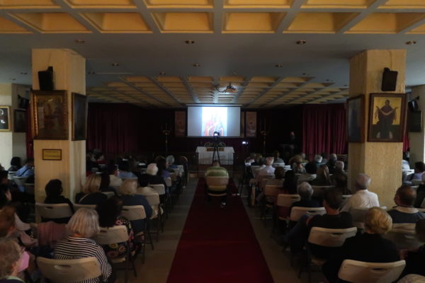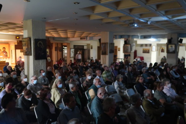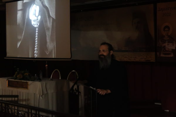 Μετά τις ακολουθίες των παρακλητικών κανόνων προς τιμήν του Αγίου Δημητρίου και Αγίας Φωτεινής της Σαμαρείτιδος, ακολούθησε ομιλία από τον Αιδεσιμολογιώτατο Πρωτοπρεσβύτερο π. Σπυρίδωνα Βασιλάκο, Εφημέριο του Προσκυνηματικού Ναού Ευαγγελιστή Λουκά Θηβών, με θέμα: “Όσιος Εφραίμ Κατουνακιώτης, Νηπτικός Πατέρας της εποχής μας”.