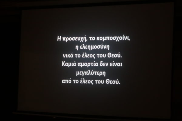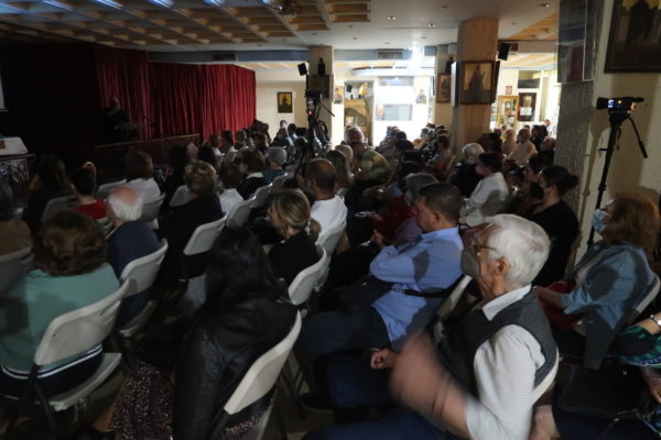 Με τη βοήθεια του οπτικο-ακουστικού υλικού και τον χαρισματικό λόγο του, ο π. Σπυρίδων καθήλωσε το πυκνό ακροατήριο, το οποίο με εμφανή συγκίνηση, ταξίδεψε νοερά στα μέρη που γεννήθηκε και μεγάλωσε ο Όσιος Εφραίμ, καθώς επίσης και στο Άγιον Όρος, στο οποίο ασκήτεψε και ετελειώθει οσιακά.