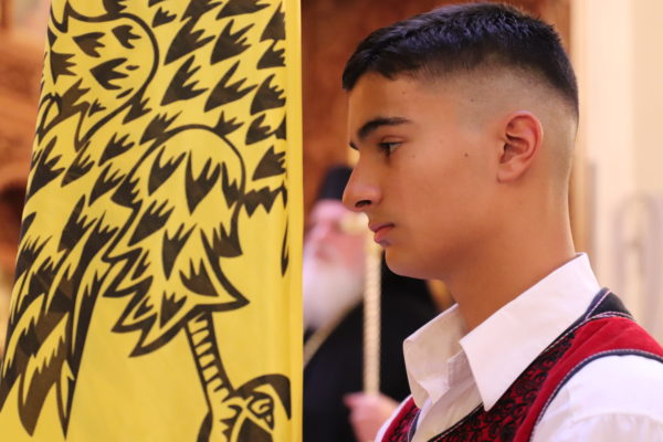 Προ της απολύσεως της ιεράς λιτανεύσεως, όλοι οι πιστοί έψαλαν το κοντάκιο “Τη Υπερμάχω”, προς τιμήν της Υπεραγίας Θεοτόκου και τον Εθνικό μας Ύμνο.