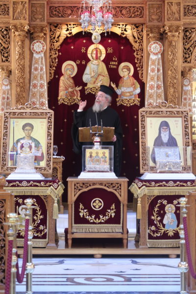 Σε άλλο σημείο τόνισε: “Οι άγιοι είναι απαραίτητοι ως τελικός σκοπός της ζωής του καθενός μας⸱ «ἐξελεξάμην παραρριπτεῖσθαι ἐν τῷ οἴκῳ τοῦ Θεοῦ μου μᾶλλον ἢ οἰκεῖν με ἐν σκηνώμασιν ἁμαρτωλῶν». (Ψαλμ. 83,11) Μια γωνιά του παραδείσου είναι ο σκοπός όλων μας. «Λίγο φως θέλω μόνο λίγο φως και θα γίνει το σκοτάδι ουρανός» λέει το άσμα. Αυτό το φως είναι για μας οι άγιοι. Ας μην λησμονούμε ότι πάντα οι άγιοι ήταν μειοψηφία. Δεν έκαναν θόρυβο, αλλά ζούσαν ως μικρή ζύμη, που όλο το φύραμα ζυμώνει σε ένα κόσμο που συνέχιζε ανύποπτος την πορεία της καθημερινότητας, την αμαρτία, τον θόρυβο της ισχύος, το φαίνεσθαι, το ψεύτικο. Αλλά στο τέλος νικά ο Χριστός και οι άγιοι, που γίνονται οι παρηγορητές όλων μας”.