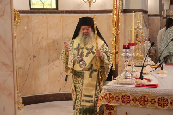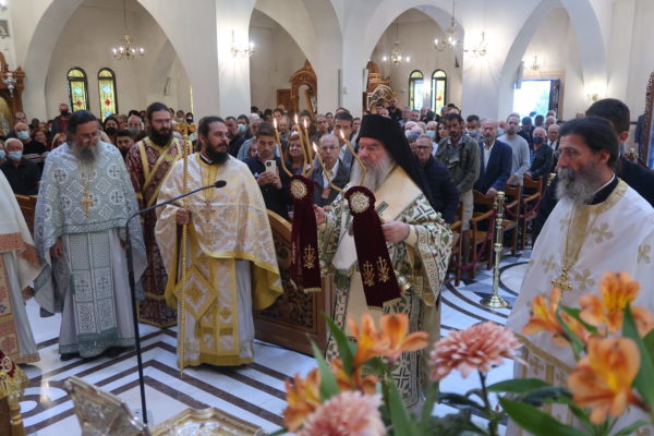 Ο ναός κατακλύσθηκε από πιστούς που παρακολούθησαν τη Θεία Λειτουργία.