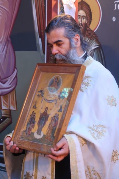 Ακολούθησε ιερά αγρυπνία με τη συμμετοχή πλήθους πιστών, επί τη εορτή της Αγίας Σκέπης της Υπεραγίας Θεοτόκου, με λειτουργό και ομιλητή τον Πανοσιολογιώτατο Αρχιμανδρίτη Γέροντα Βαρθολομαίο, Ηγούμενο της Ιεράς Μονής Εσφιγμένου Αγίου Όρους, τιμώντας ταυτόχρονα και την θαυματουργό εικόνα της “ΠΑΝΑΓΙΑΣ ΤΗΣ ΤΡΙΧΕΡΟΥΣΑΣ”, της οποίας ακριβές αντίγραφο προερχόμενο από την Ιερά Μονή Χιλανδαρίου Αγίου Όρους, ευρίσκεται στο ομώνυμο Παρεκκλήσιο του ισογείου Ιερού Ναού μας.