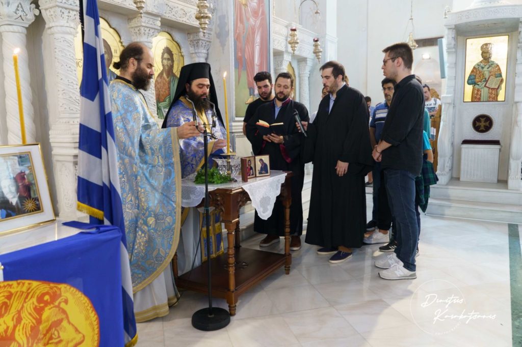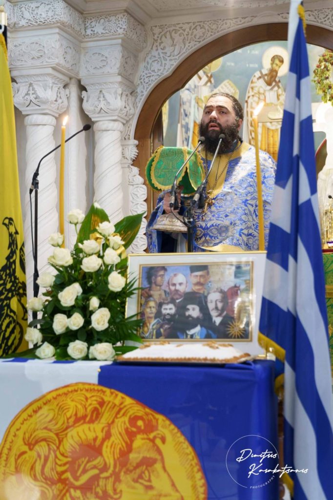 Στο λόγο του ο Αρχιμανδρίτης π. Μακάριος, λόγω της σημερινής άληστου μνήμης ημέρας δεν ανέλυσε την Ευαγγελική Περικοπή άλλα μίλησε περιεκτικά για τον ένδοξο αιματηρό αγώνα και τις ηρωικες μορφες των Επισκοπών Γερμανου Καραβαγγέλη και Ιωακείμ του Γ, του Παύλου Μελά, του Ίωνα Δραγούμη, του Καπετάν Άγρα και Ράμναλη και άλλων πρωταγωνιστων του Μακεδονικού Αγώνα.