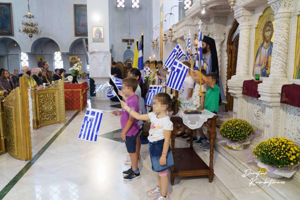 Κλήρος και λαός στο τέλος της Δοξολογίας έψαλαν τον Εθνικό Ύμνο και τραγούδησαν το γνωστό εμβατήριο “Μακεδονία ξακουστή…”.
