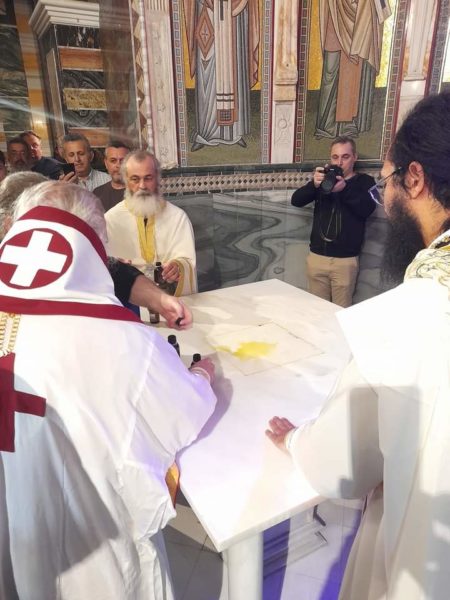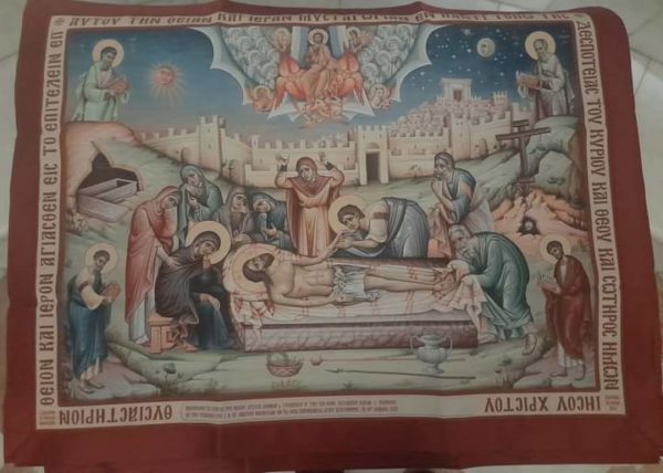 Αντιμήνσιο από τα εγκαίνια του Ιερού Ναού Αγίου Ανδρέου Δήμου Αγίας Παρασκευής Αττικής