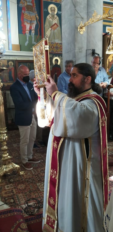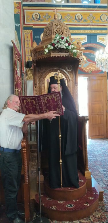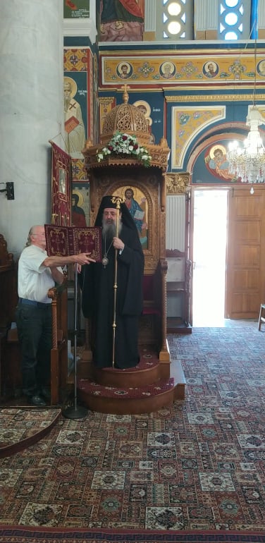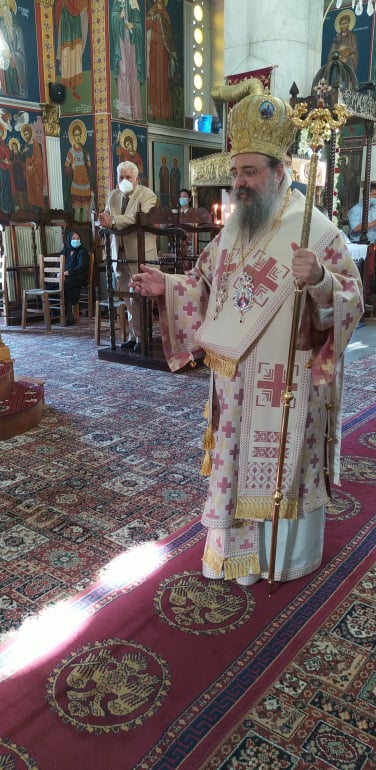 Ευχαρίστησε τον Σεβασμιώτατο Ποιμενάρχη κ. Αλέξανδρο για την τιμή, την άδεια και ευλογία να προστεί των ιερών Ακολουθιών και ευχήθηκε να εορταστούν και τα διακόσια και τα τριακόσια χρόνια του Ναού και να δοξάζεται μέσα σ’ αυτόν το Πανάγιο όνομα του Τριαδικού Θεού, διά του ενδόξου αγίου του και ιαματικού Παντελεήμονος.