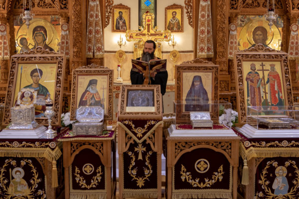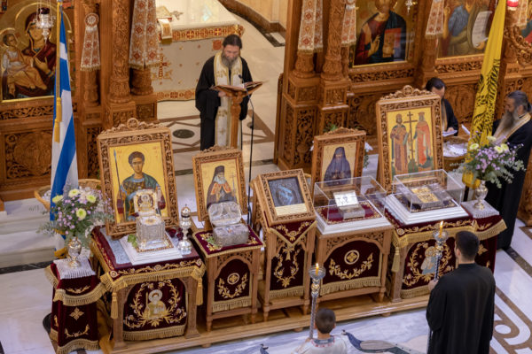 Η 8η μέρα των εορταστικών εκδηλώσεων ολοκληρώθηκε με κατανυκτική αγρυπνία στην οποία ιερούργησε ο Αιδεσιμολογιώτατος Πρωτ. π. Εμμανουήλ Παπαμικρούλης, εφημέριος Ιερού Ησυχαστηρίου Μεταμορφώσεως του Σωτήρος Μήλεσι Αττικής και έψαλαν ο Πρωτοψάλτης κ. Δημήτριος Σακαλής και ο Λαμπαδάριος κ. Νικόλαος Κρυστάλλης.