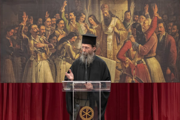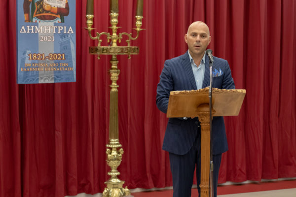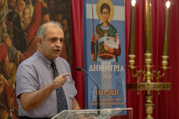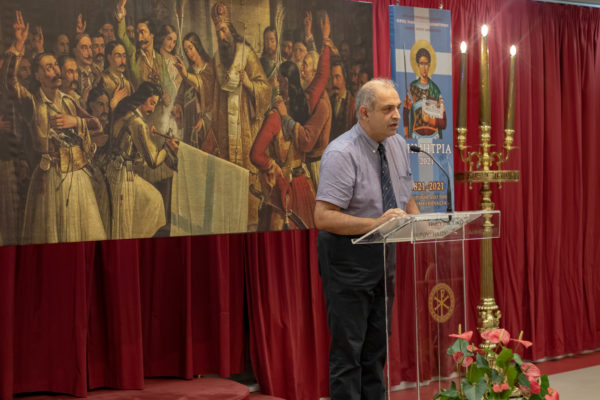 Ακολούθησε ομιλία με θέμα: “΄21: Το Πάσχα της Ρωμιοσύνης”και ομιλητή τον κ. Ηλία Λιαμή, Δρ. Θεολογίας και Συγγραφέα.
