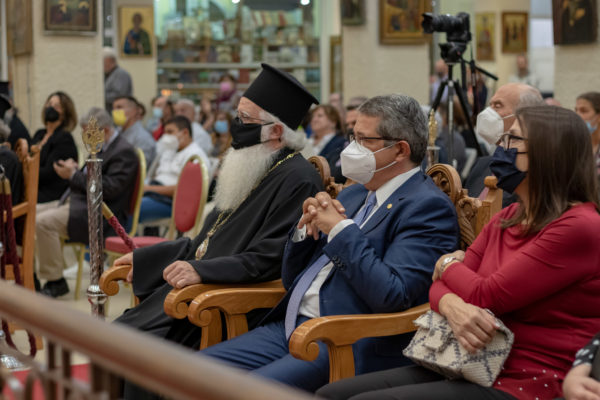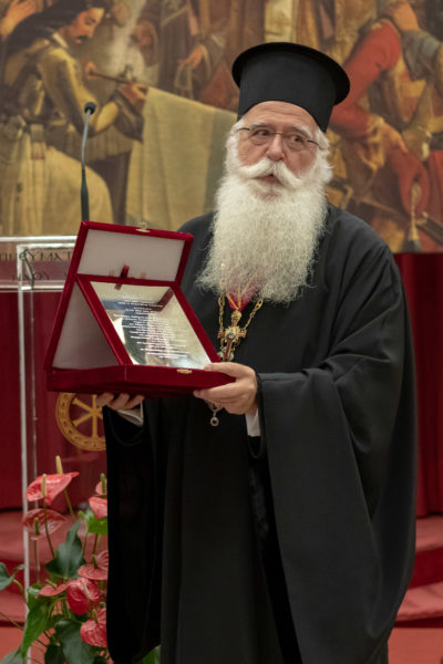 Η εκδήλωση άρχισε με χαιρετισμό από τον εκπρόσωπο του Μακαριωτάτου Αρχιεπισκόπου Αθηνών και Πάσης Ελλάδος κ.κ. Ιερωνύμου, Θεοφιλέστατο Επίσκοπο Ανδρούσης κ. Κωνστάντιο.