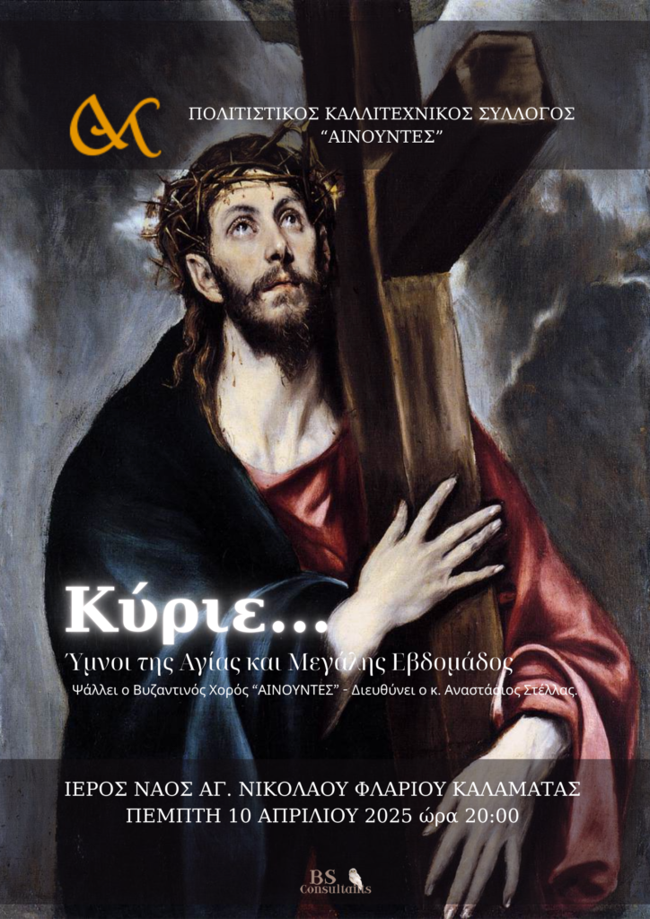 Ο Πολιτιστικός Καλλιτεχνικός Σύλλογος “ΑΙΝΟΥΝΤΕΣ” θα παρουσιάσει ένα ψαλτικό αφιέρωμα, ενόψει της Μεγάλης Εβδομάδας και της εορτής του Πάσχα, με τίτλο: «“Κύριε…” – Ύμνοι της Αγίας και Μεγάλης Εβδομάδος».