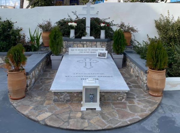 Αμέσως μετά τη Θεία Λειτουργία και την ακολουθία του ιερού μνημοσύνου εψάλη τρισάγιο στο μνήμα όπου αναπαύεται ο Γέροντας όπισθεν του Ιερού Βήματος του Ιερού Ναού.