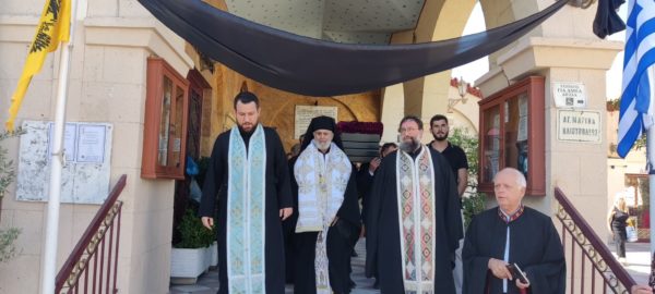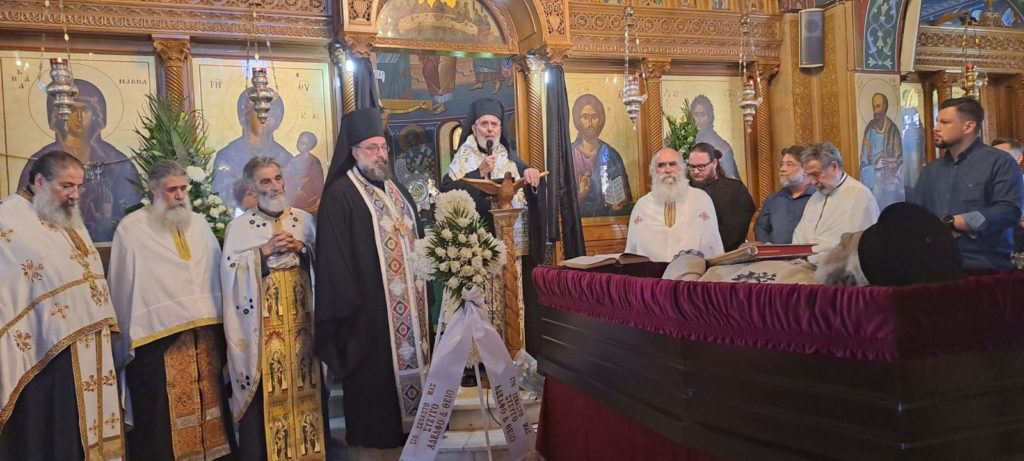 Ο πρόεδρος του εκκλησιαστικού συμβουλίου του ναού της αγίας Μαρίνης, αρχιμανδρίτης Σεραφείμ Δημητρίου, εκφώνησε επικήδειο λόγο, αναφερθείς εις την επί γης διαδρομή του αοιδίμου πρεσβυτέρου, ευχηθείς για την ανάπαυσή Του και εκζητήσας και την συγχώρεσή Του.