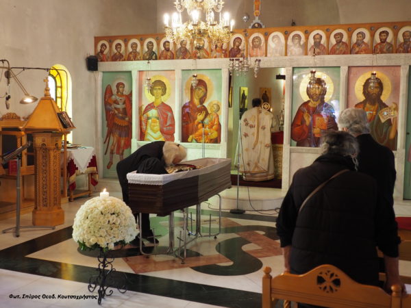 Της εξοδίου ακολουθίας προεξήρχε ο Σεβασμιώτατος Μητροπολίτης Θερμοπυλών κ. Ιωάννης συμπαραστατούμενος από τον Σεβασμιώτατο Μητροπολίτη Κορωνείας κ. Παντελεήμονα.