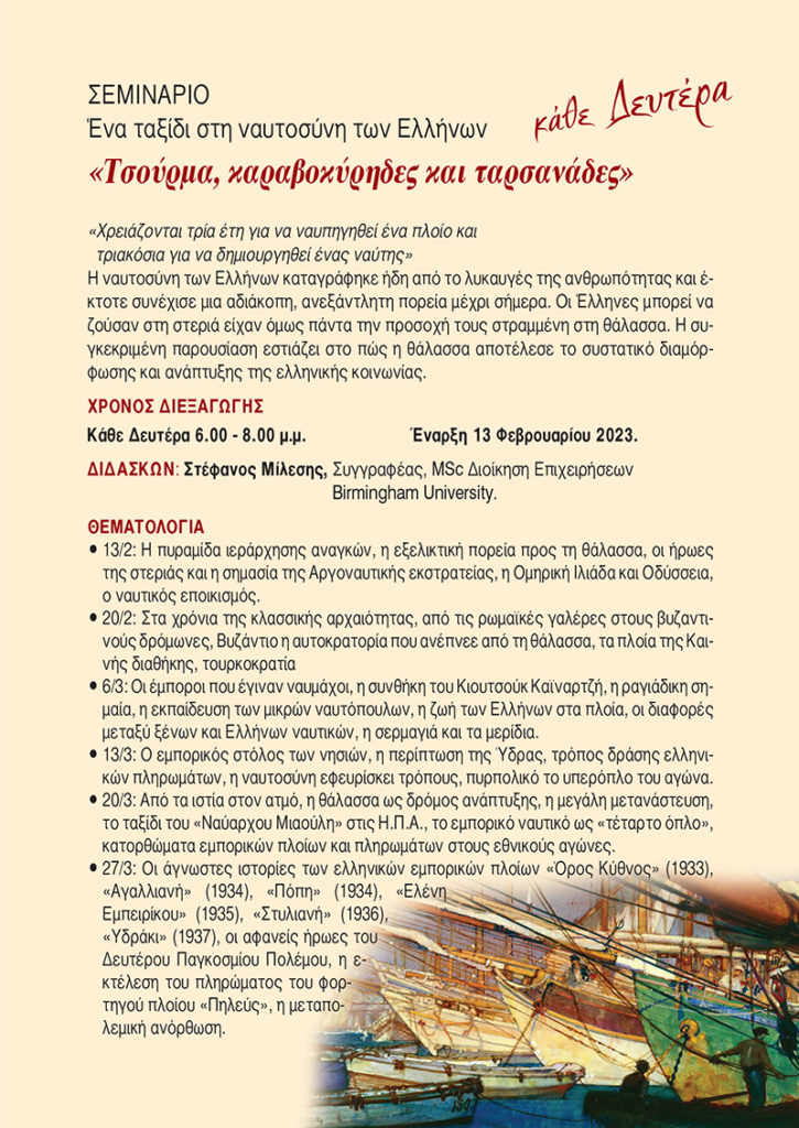 ΣΕΜΙΝΑΡΙΟ: Ένα ταξίδι στη ναυτοσύνη των Ελλήνων