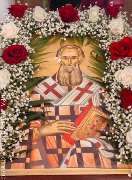 Παραμονή της εορτής τελέσθηκε ο Μέγας Πανηγυρικός Εσπερινός, χοροστατούντος του Σεβασμιωτάτου κ. Χρυσοστόμου, συμπαραστατουμένου εκ του Εφημεριακού Κλήρου της Σύμης. Προσήλθαν ευάριθμοι πιστοί για να ανάψουν το κερί τους, να προσκυνήσουν το χαριτόβρυτο απότμημα του αγίου Λειψάνου και να προσευχηθούν στον άτλαντα αυτόν της υγιούς πίστεως, που κατατρόπωσε τις αιρετικές δοξασίες του Αρείου, στερεώνοντας την Ορθοδοξία. Εν συνεχεία στην παρακείμενη ενοριακή αίθουσα, προσεφέρθη εόρτια Τράπεζα.