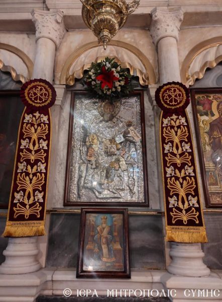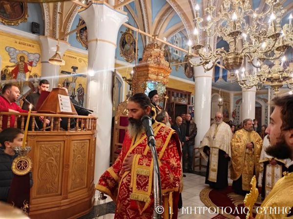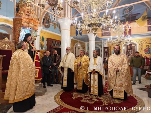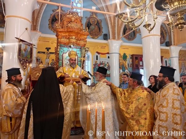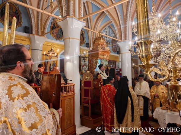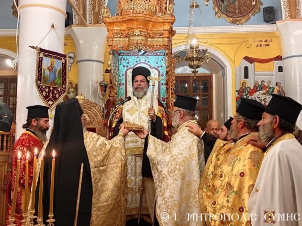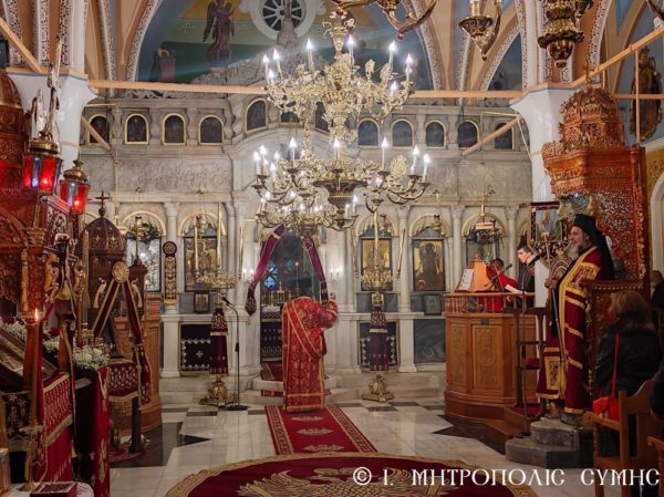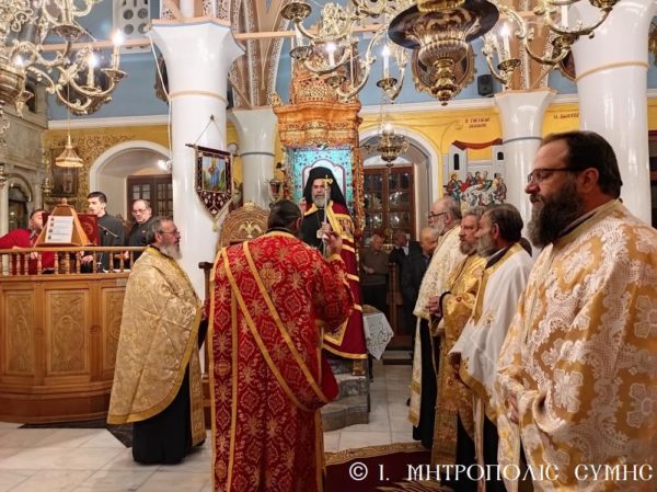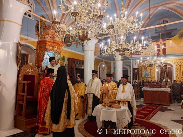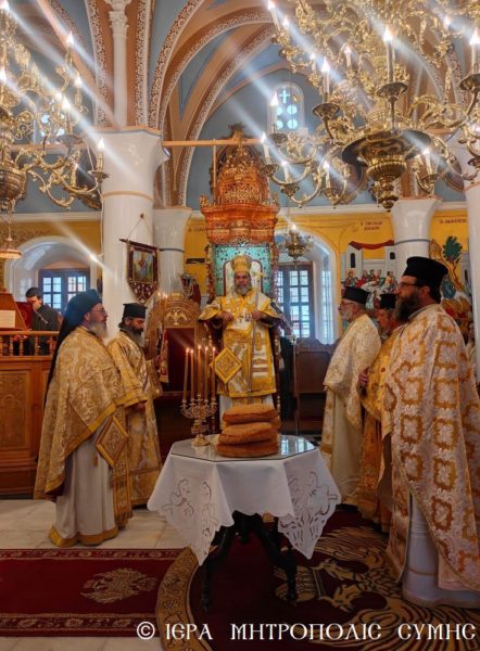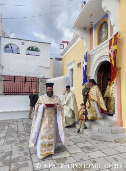 Την κυριώνυμο ημέρα της εορτής, ο Σεβασμιώτατος Μητροπολίτης Σύμης κ. Χρυσόστομος χοροστάτησε στον Όρθρο, τέλεσε την Θεία Λειτουργία και ευηγγελίσθηκε τον θείο λόγο στους πιστούς, έχοντας συλλειτουργούς του τον Πανοσιολ. Καθηγούμενο της Ιεράς Μονής Πανορμίτη Αρχιμανδρίτη Αντώνιο Πατρό, τον Γεν. Αρχιερατικό Επίτροπο Πρωτοπρ. Στέφανο Μακρή, τον Εφημέριο του Ιερού Ναού Αγίας Τριάδος π. Γεώργιο Χατζηχρυσάφη, τον Εφημέριο του εορτάζοντος Ιερού Ναού Οικονόμο π. Ελευθέριο Οθίτη και τον Διάκονο π. Γεώργιο Κακακιό.
