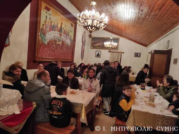 Μετά την απόλυση, με την μέριμνα του φιλόξενου και δραστηρίου Εκκλησιαστικού Συμβουλίου της Ενορίας και των κυριών αυτής, προσεφέρθησαν στους εκκλησιαζομένους καφές και πλούσια πατροπαράδοτα κεράσματα.