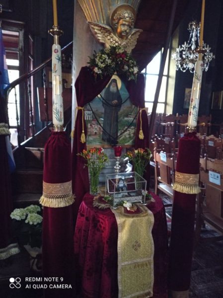 Κατά τον πρώτο Εορτασμό του νέου Αγίου της Εκκλησίας τέθηκε σε προσκύνημα από τους πιστούς, τμήμα του Ιερού Λειψάνου Του που πρόσφατα δωρήθηκε στον Ιερό μνημειακό Ναό καθώς και βαμβάκι από την Τιμία Κάρα και χώμα από τον Τάφο του στα Κατουνάκια του Αγίου Όρους.