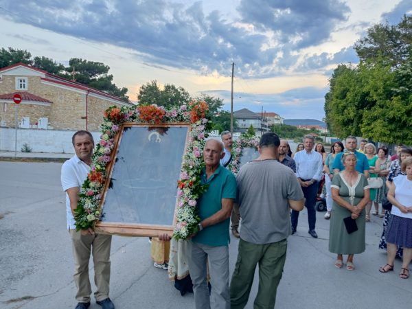 Το απόγευμα του Σαββάτου, 19 Αυγούστου 2023, τελέστηκαν ο Μέγας Πανηγυρικός Εσπερινός και η Αρτοκλασία. Τη διακονία του Θείου Λόγου ανέλαβε ο Ιεροκήρυξ της Ιεράς Συνόδου της Εκκλησίας της Ελλάδος Σεβαστιανός Τοπάλης, ο οποίος εκπροσώπησε τον Σεβασμιώτατο Μητροπολίτη Φλωρίνης, Πρεσπών & Εορδαίας κ. Θεόκλητο. Κατόπιν, επακολούθησε η Ιερά Λιτάνευσις του Ιερού Λειψάνου και της Θαυματουργού Ιεράς Εικόνος της Αγίας Παρασκευής.