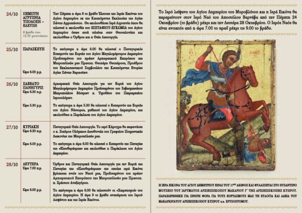 ΕΠΙΚΑΙΡΟΙ ΕΟΡΤΑΣΜΟΙ ΑΓΙΟΥ ΔΗΜΗΤΡΙΟΥ ΣΤΗΝ ΕΝΟΡΙΑ ΑΠΟΣΤΟΛΟΥ ΒΑΡΝΑΒΑ ΚΑΤΩ ΠΟΛΕΜΙΔΙΩΝ (ΚΥΠΡΟΣ) ΑΠΟ 24 ΕΩΣ 28 ΟΚΤΩΒΡΙΟΥ 2019 – ΠΡΟΣΚΥΝΗΣΗ ΛΕΙΨΑΝΟΥ ΚΑΙ ΕΛΕΥΣΙΣ ΕΙΚΟΝΑΣ ΑΠΟ ΤΟΝ ΝΑΟ ΤΗΣ ΑΓΙΑΣ ΖΩΝΗΣ ΑΜΜΟΧΩΣΤΟΥ.