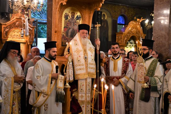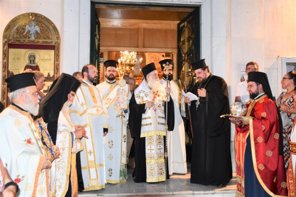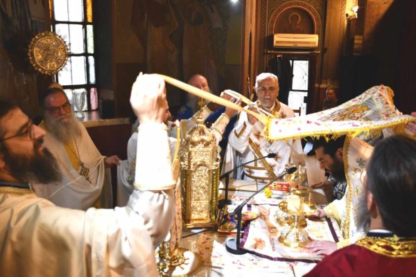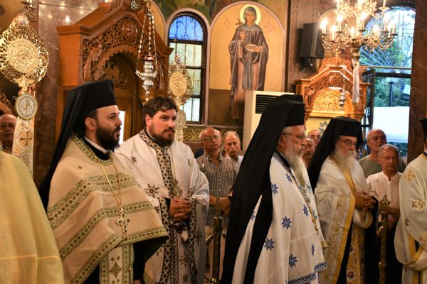 Χοροστάτησε ο Επίσκοπος Θεσπιών κ. Παύλος, πλαισιούμενος από τον Προϊστάμενο του ναού π. Νικόλαο Καββαδία, τον συνεφημέριο Αρχιμανδρίτη Ανδρόνικο Αλεξάκη και Διακόνων της Αρχιεπισκοπής Αθηνών.