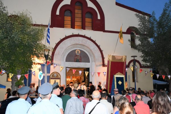 Το απόγευμα της Κυριακής, τελέστηκε ο μέγας πανηγυρικός αρχιερατικός εσπερινός, όπου χοροστάτησε ο Επίσκοπος Ρωγών κ. Φιλόθεος, ο οποίος με μεστό λόγο αναφέρθηκε στην προσωπικότητα και την αγιασμένη βιοτή της Αγίας Μεγαλομάρτυρος Μαρκέλλας.