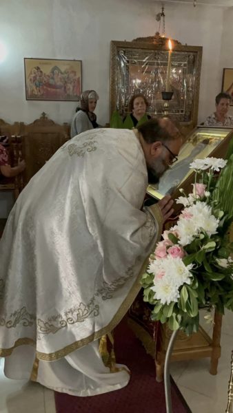 Όπως αναφέρει και στο κήρυγμα του ο προϊστάμενος του ναού π. Στυλιανός Χαρπαντίδης, μετά από αίτημα του ίδιου και του εκκλησιαστικού συμβουλίου της ενορίας, με την σύμφωνη γνώμη του οικείου Μητροπολίτη και με την ευλογία του γέροντος και καθηγουμένου της Ιεράς Μεγίστης Μονής Βατοπαιδίου Εφραίμ, τον όποιον ευχαρίστησε για ακόμη μια φορά, εδώ και δύο χρόνια βρίσκεται θησαυρισμένο το αντίγραφο της Ιεράς Εικόνας της Τιμίας Ζώνης της Παναγίας μας στον ναό, προς ενίσχυση και και ευλογία τον πιστών και της ενορίας.