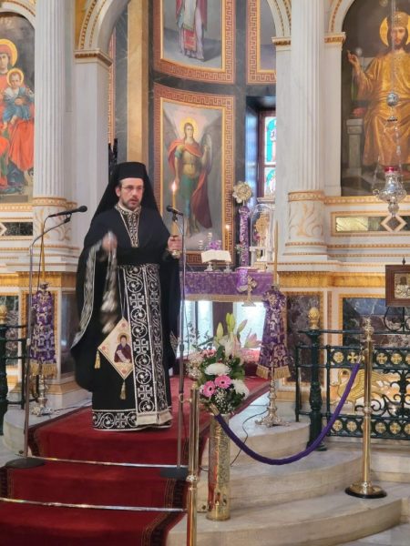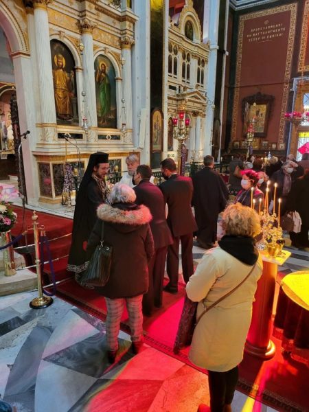 Μετά την τέλεση της Αρτοκλασίας και προ του πέρατος της Ακολουθίας, την οποία αναμετέδωσε απ’ ευθείας ο Περιφερειακός Τηλεοπτικός Σταθμός «SYROS TV1», ο εορτάζων Εφημέριος ευχαρίστησε όλους για τις ευχές τους και ιδιαίτερα τον Σεβασμιώτατο κ. Δωρόθεο Β’ για την προς αυτόν πατρική του αγάπη, τη στήριξή του και τις πολλές ευεργεσίες του.
