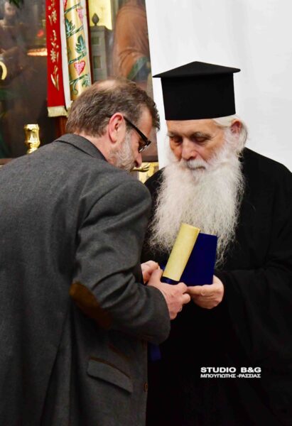 Βραβεύθηκαν οι Εκκλησιαστικοί Επίτροποι: Ιωάννης Αθ. Χασάπης, Παναγιώτης Δ. Κόντης, Ευάγγελος Μ. Βρέλος, Σπυρίδων Κ. Σωτηρόπουλος και Χρήστος Α. Κουτρουφίνης για την διακονία τους στην ενορία και την θυσιαστική αγάπη τους. Τιμήθηκαν για την πολυετή διακονία τους στην ενορία και την αγάπη τους οι δυο Ιεροψάλτες Ιωάννης Ν. Τσακίρης και Χρήστος Κ. Καρκούλης, οι οποίοι συμπλήρωσαν 45 χρόνια στα ιερά αναλόγια.