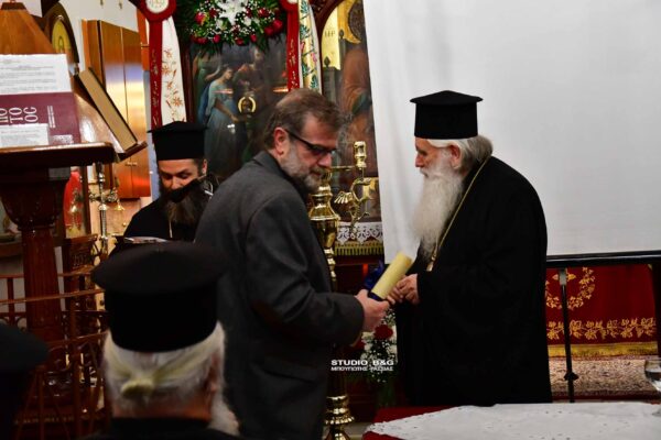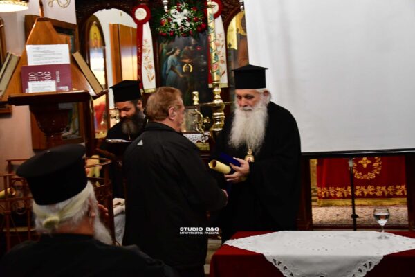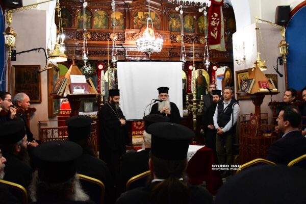 Ο Εφημέριος της Ενορίας και Γενικός Αρχιερατικός Επίτροπος της Ιεράς Μητροπόλεως Αργολίδος Πρωτ. Πέτρος Αθανασόπουλος έκανε ολιγόλεπτη ομιλία για την ολοκλήρωση των έργων ανακαινίσεως του Ιερού Ναού και στη συνέχεια αφού ευχαρίστησε εκ μέρους του Εκκλησιαστικού Συμβουλίου τον Σεβασμιώτατο Μητροπολίτη Αργολίδος για την πατρική αγάπη του, ευχαρίστησε και όλο τον ευλογημένο λαό που βοήθησε.