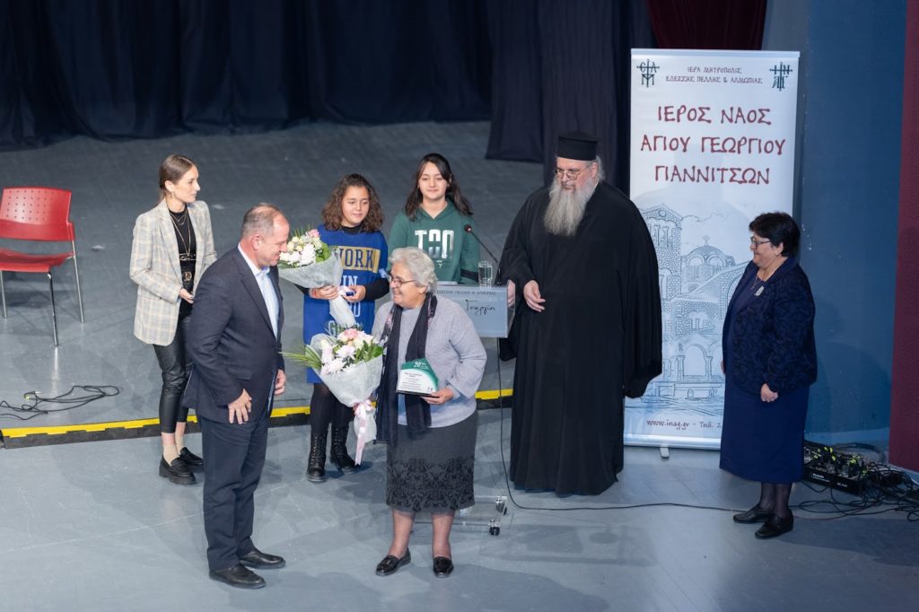 Συγκεκριμένα τιμήθηκαν δύο εθελόντριες κυρίες, υπεύθυνες ομάδων από τη αρχή λειτουργίας του Γεύματος, δύο αρτοποιεία της πόλης των Γιαννιτσών, που προσφέρουν δωρεάν ψωμί, και δύο επιχειρήσεις που προσφέρουν μονίμως δωρεάν λαχανικά.