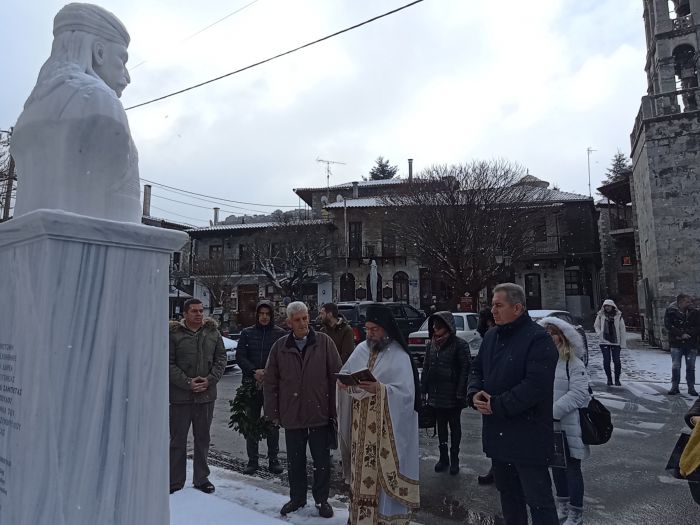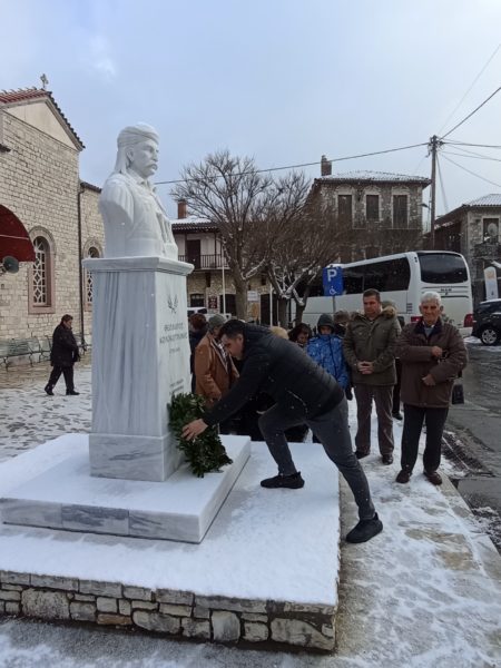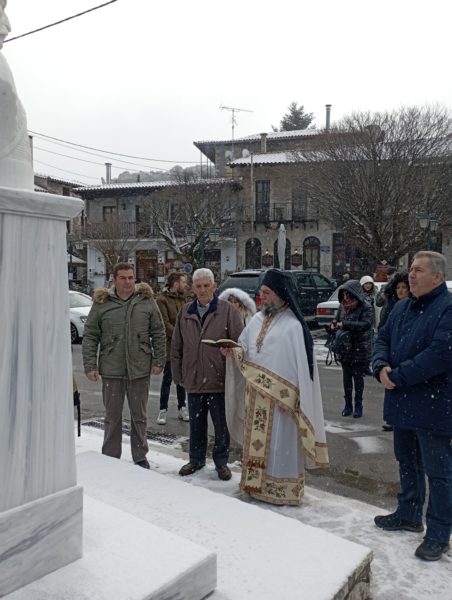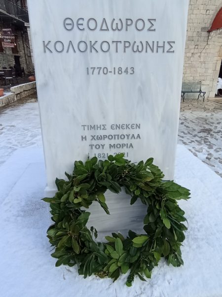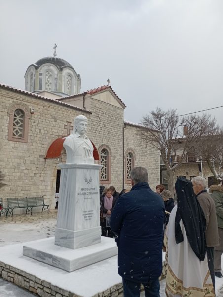 Μετά τη Θεία Λειτουργία στον Ιερό Ναό Αγίου Γεωργίου Στεμνίτσας, παρά τη χιονόπτωση και τις χαμηλές θερμοκρασίες τελέστηκε επιμνημόσυνη δέηση από τον εφημέριο του Ιερού Ναού, αρχιμανδρίτη Ιωσήφ Αγγελίδη,μπροστά στην προτομή του Θεόδωρου Κολοκοτρώνη.
