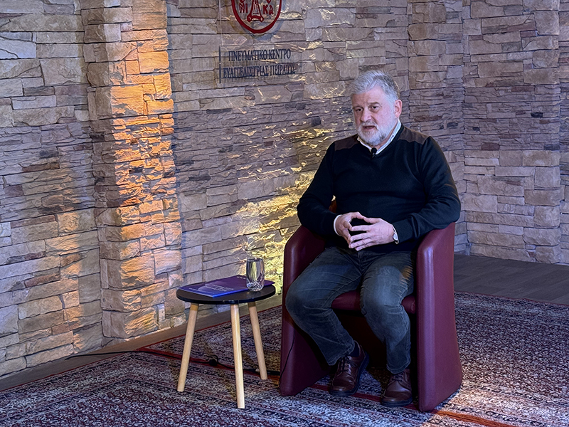 Την Κυριακή 14 Δεκεμβρίου ο Πρόεδρος του Σ.Ε.Π. κ. Παναγιώτης Χαρατζόπουλος, Φυσικός Msc, MEd, φιλοξένησε τον κ. Κωνσταντίνο Κορναράκη, Καθηγητή της Θεολογικής Σχολής του Ε.Κ.Π.Α, σε μία συζήτηση με θέμα: «Επιστροφή στο μέλλον: Η Τεχνητή Νοημοσύνη στο κάτοπτρο της Πατερικής ανθρωπολογίας».
