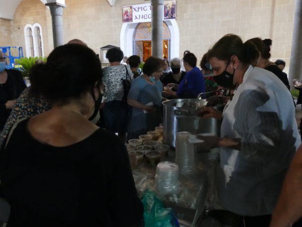 Έξω στο προαύλιο προσφέρθηκε ψαρόσουπα στους πιστούς την οποία ετοίμασαν οι κύριες του Χριστιανικού Συνδέσμου της Ενορίας, τις οποίες και ευχαρίστησαν οι κληρικοί της ενορίας.