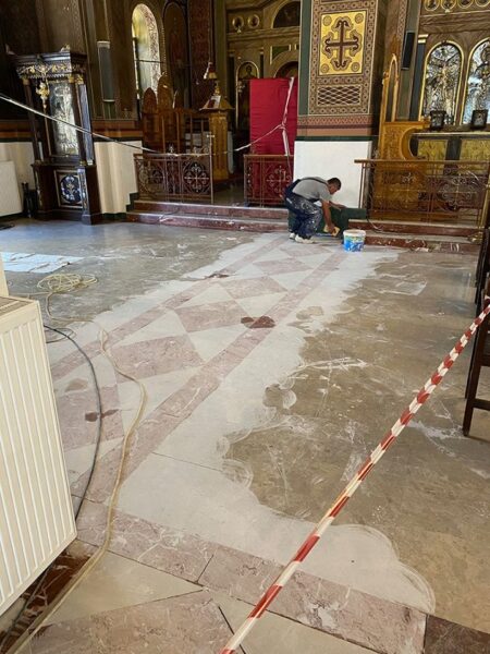Σε αυτή τη 2η φάση, οι εργασίες αφορούν την ανακαίνιση και συντήρηση των εσωτερικών δαπέδων του Ναού.