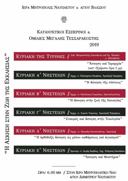 Εσπερινοί και ομιλίες της Μεγάλης Τεσσαρακοστής στον Ι.Ν. Αγίου Δημητρίου Ναυπάκτου