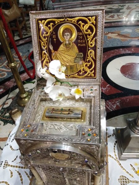 Πλήθος κόσμου συνέρρευσε λοιπόν στον περικαλλή ναό του Αγίου στην Αχαρνών, για να τιμήσει την σεπτή μνήμη του και να δεηθεί για την ιαματική αρωγή του. Του πανηγυρικού συλλείτουργου χοροστάτησαν οι Άγιοι Πατέρες, κ.κ. Χρυσόστομος Ευρίπου και Λαοδικείας Θεοδώρητος, με την επικουρία των ευλαβών ιερέων του ναού, του Προϊσταμένου του Αρχιμανδρίτη, πατρός Νικολάου Κατσαφαρόπουλου, Ταριάδη Αβίβου , Ναζαρούκ Πέτρου, Γιαννακόδημου Παναγιώτη, Kalandadze Συν, Ejibishvili Zaza, Γιουρίνα Μιχαήλ, Πανουσόπουλου Παναγιώτη, Ζολοτένκο Γεωργίου, των διακόνων του Αλέξιου Περεβόζτσικοβ και Νικόλαου Khvichia και πλήθους ακόμα ιερέων, που προσήλθαν να τιμήσουν την ιερή μνήμη του Αγίου Παντελεήμονος. Πανέμορφος και επιβλητικός ο λαμπροστόλιστος ναός της Αχαρνών, έλαμπε στην κυριολεξία από το θείο φώς του Αγίου και κατηύγαζε ηθικά την άχραντη μορφή του. Και αποτέλεσε η κατανυκτική αυτή πανηγυρική εορτή, ένα πελώριο αντάμωμα όλου του λαού των Αθηνών, που κατασυγκινημένος ήλθε να προσκυνήσει τον Άγιό μας, προστάτη και Έφορο της επιστήμης της Ιατρικής. Με το πέρας του εσπερινού επακολούθησε μικρής έκτασης – ένεκα της πανδημίας – εκλιτάνευση της ιεράς εικόνας του Αγίου, περιμετρικά του ναού. Και διάστικτοι από συγκίνηση οι κάτοικοι των πολυκατοικιών έραιναν την εικόνα του εφόρου τους, με μύρα και άνθη. Εκφράζοντας ευλαβικά την πίστη τους στον Ιερό και Ιαματικό Παντελεήμονα, που επισκοπεί ανά τους αιώνες με την αγιομαρτυρική του θυσία, το ευγενές ήθος της Ορθοδοξίας μας.
