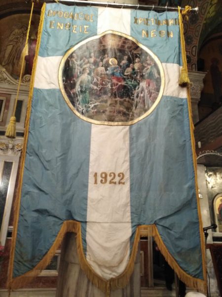 Σύσσωμος έτσι ο λαός του 1ου Διαμερίσματος των Αθηνών, προσήλθε στον πανέμορφο και μεγαλοπρεπή ναό λοιπόν της Ζωοδόχου Πηγής στην οδού Ακαδημίας, ένεκα του οποίου, όλη η συνοικία της ευρύτερης περιοχής ονομάζεται «Ζωοδόχος πηγή», για να γιορτάσει την κορυφαία εορτή, της Κυριακής της Πεντηκοστής. Σημειώνοντας εμφατικά πως ο ναός της Ζωοδόχου Πηγής εόρταζε σήμερα και μια σπουδαία ημέρα, της ηθικής του μνήμης και ιστορίας, αυτήν της συμπληρώσεως 100 ετών, από την ίδρυση της πολύπλαγκτης πνευματικά «Ορθοδόξου Χριστιανικής Ενώσεως Νέων», που με έδρα την ομώνυμη εκκλησία και μέσα στα δίσεκτα χρόνια της τραγικής Μικρασιατικής Καταστροφής, ξεκίνησε τη μακρά και πολυεπίπεδη πνευματικά λαμπρηφόρο πορεία της. Για τούτο και ο ναός εκοσμείτο σήμερα με το ιστορικό λάβαρο και τη σημαία της Ενώσεως, ενώ ο ευσεβής Πατέρας Ηλίας Δροσινός, εκφώνησε και έναν υψηλού ήθους λόγο, για την μακρά συμβολή και προσφορά της Ενώσεως, τιμώντας και την μνήμη των πρωτεργατών της. Τους εμπνευσμένους ρασοφόρους και λαϊκούς, που με στήριγμα τους ορθόδοξους νέους της εποχής, προέβησαν σε ένα ωφέλιμο κοινωνικά και πνευματικά έργο, συμβάλλοντας ζωτικά στην καθημαγμένη από την μικρασιατική τραγωδία Ελλάδα. Της πανηγυρικής λειτουργίας στη σημαντική αυτή εορτή της ορθοδοξίας μας, χοροστάτησε ο ευσεβής Προϊστάμενος του ναού Πατέρας κος Ηλίας Δροσινός – που επιμελείται άψογα το ναό με τις ανύσταγες φροντίδες του – συγχοροστατούντος και του άλλου ιερέως του ναού, του ευλαβούς Πατρός Κωνσταντίνου Φεργαδιώτη.