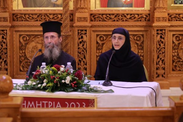 Την Οσιολογιωτάτη Γερόντισσα Φιλοθέη, Ηγουμένη της Ιεράς Μονής Παναγίας Βρυούλων, φιλοξένησε ο Ιερός Ναός Αγίου Δημητρίου στον οποίο λαμβάνουν χώρα οι ενοριακές εορταστικές εκδηλώσεις «ΔΗΜΗΤΡΙΑ 2023». Θέμα της ομιλίας ήταν: “Σοί παρακατατιθέμεθα τήν ζωήν ἡμῶν ἅπασαν καί τήν ἐλπίδα Δέσποτα φιλάνθρωπε”.