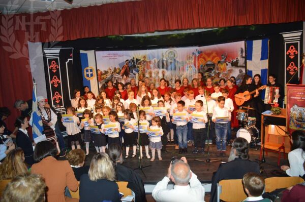 Την εκδήλωση έκλεισαν τα μικρά κατηχητόπουλα της Ενορίας, τα οποία απέδωσαν με τις κατηχήτριές τους, τραγούδια πατριωτικά διανθισμένα με συνθήματα.