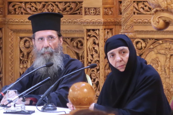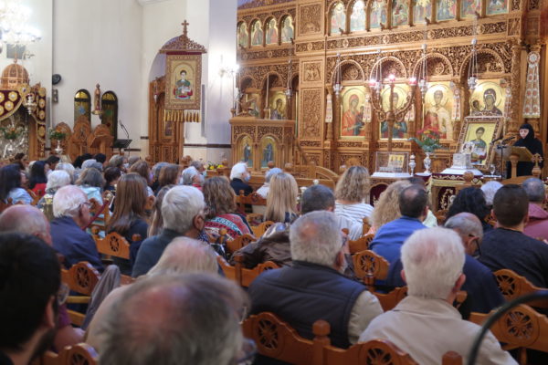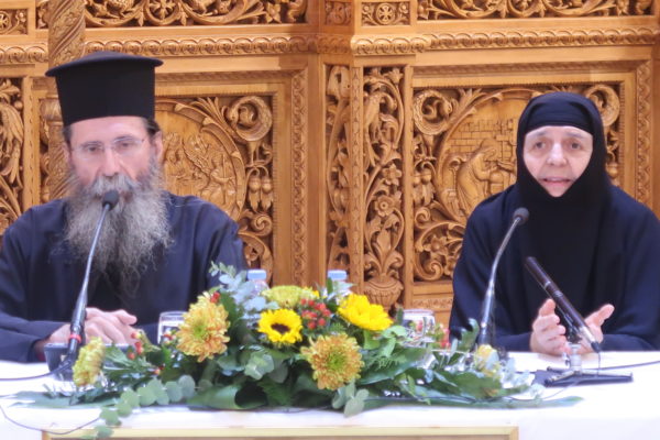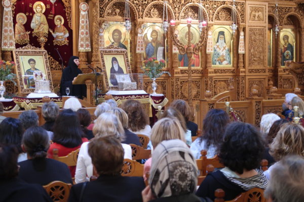 Ακολούθησε ομιλία με τη Γερόντισσα Θεοξένη, Ηγουμένη της Ιεράς Πατριαρχικής και Σταυροπηγιακής Μονής Χρυσοπηγής Χανίων με θέμα: «Αναζητώντας την ειρήνη σε έναν ανειρήνευτο κόσμο».