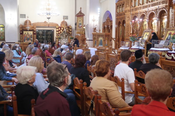 Εν συνεχεία πραγματοποιήθηκε το καθιερωμένο «Ενοριακό Αρχονταρίκι» στο οποίο η Γερόντισσα Θεοξένη απάντησε στα ερωτήματα που της υπέβαλαν οι ακροατές.