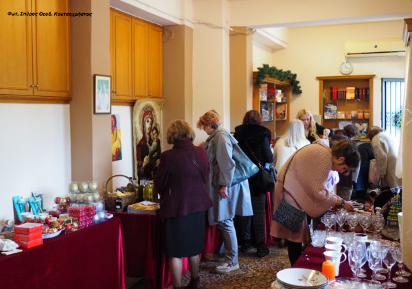 Στην αίθουσα πολλαπλών χρήσεων, ακολούθησε η Χριστουγεννιάτικη εκδήλωση με θεατρικά δρώμενα από όλες τις τάξεις του Κατηχητικού σχολείου, τραγούδια και ύμνοι εψάλησαν επίσης από την χορωδία του Ιερού Ναού. Στο ” Αρχονταρίκι “, λειτουργούσε έκθεση Χριστιανικού βιβλίου, παζάρι με δώρα και κατασκευές από εθελοντές.