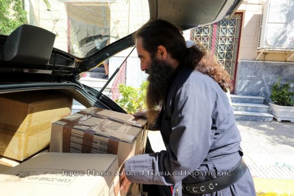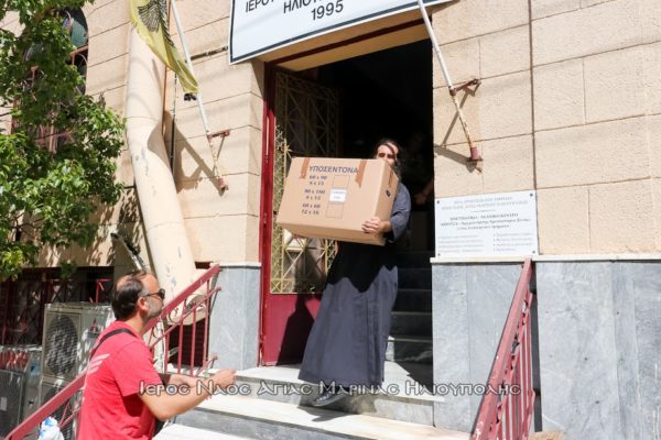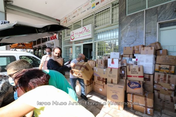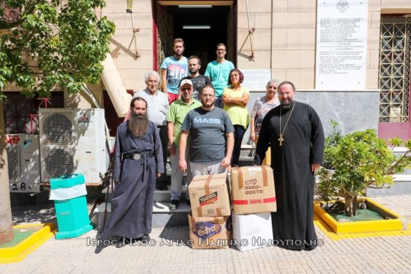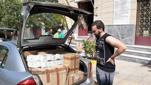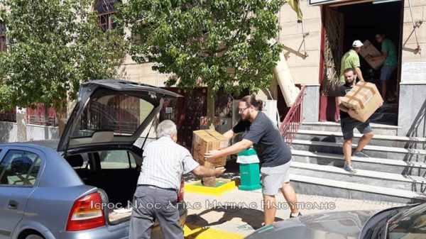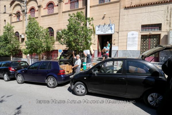 Με 5 αυτοκίνητα οι εθελοντές Βασιλική Φαλίδα, Σοφία Κολοβού, Βασίλειος Κατσαρός, Ιωάννης Γαυγιωτάκης, Ηλίας Μυλωνάς, Μάξιμος Μαρούλης, Παναγιώτης Γιολδάσης, Αναστάσιος Πολυχρονίου και ο αρχιμανδρίτης Ευσέβιος Μεάντζια έφτασαν στην έδρα του συλλόγου και παρέδωσαν το υλικό. Στο ναό ο πρόεδρος του εκκλησιαστικού συμβουλίου αρχιμανδρίτης Σεραφείμ Δημητρίου και ο αντιπρόεδρος του Γεράσιμος Π. Αλεξόπουλος συνεργήσανε στην φόρτωση.
