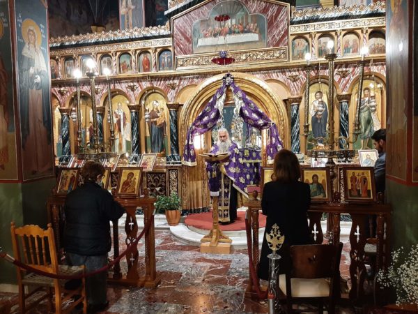 Οι πιστοί εντός και εκτός του ιερού ναού συνέρρευσαν ευλαβικά και με τάξη, τηρώντας τις υγειονομικές διατάξεις, να προσκυνήσουν τον Εσταυρωμένο Κύριο και να του εναποθέσουν τις ελπίδες τους.