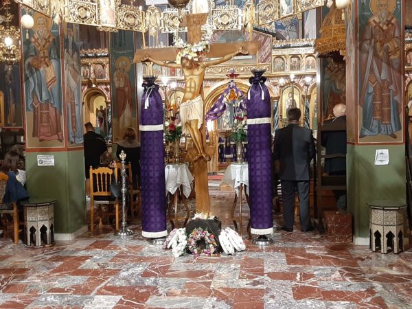 Οι πιστοί εντός και εκτός του ιερού ναού συνέρρευσαν ευλαβικά και με τάξη, τηρώντας τις υγειονομικές διατάξεις, να προσκυνήσουν τον Εσταυρωμένο Κύριο και να του εναποθέσουν τις ελπίδες τους.