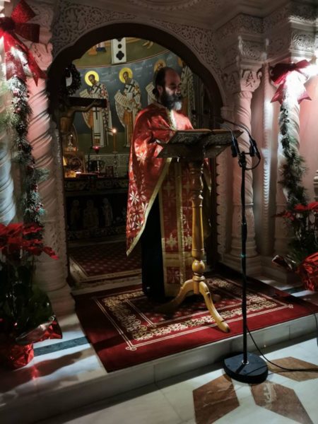 Στην ακολουθία παρευρέθηκαν πιστοί και ενορίτες οι οποίοι στο τέλος τις ακολουθίας κεράστηκαν νηστίσιμα χριστουγεννιάτικα γλυκά.