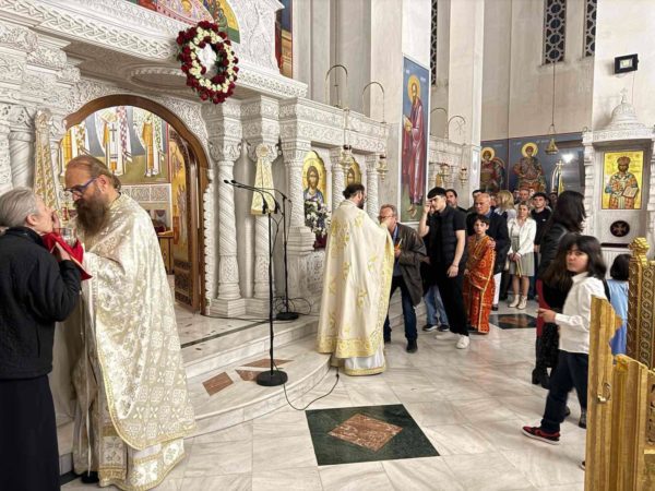 Της Ακολουθίας της Παννυχίδος και της Αναστάσιμης Θείας Λειτουργίας προεξήρχε ο προϊστάμενος μαζί με τους εφημερίους του Ναού.
