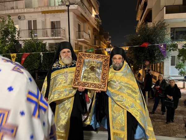 Με την δέουσα τιμή έγινε αργά το απόγευμα η υποδοχή της Ιεράς Εικόνος της Παναγίας της Χοζοβιωτίσσης Αμοργού, μπροστά στον Ιερό Ναό Αγίας Βαρβάρας Δάφνης. Την εικόνα μετέφερε ο Μητροπολίτης Θήρας, Αμοργού και Νήσων κ. Αμφιλοχίος συνοδευόμενος από τον ιερομόναχο της Μονής Θεόφιλο σημαίνοντας την έναρξη των εκδηλώσεων για την μνήμη της Αγίας Μεγαλομάρτυρος Βαρβάρας.